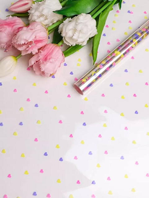 Пленка цветная Сердечки конфетти 70см микс (Код товара: 2200100033429)