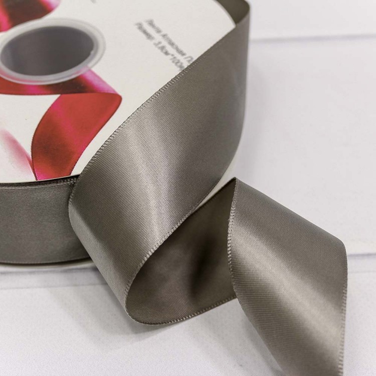 Лента атласная (полиэстер) класс А 3,8 см*100 ярд кварцевый серый (Код товара: 4627176137512)