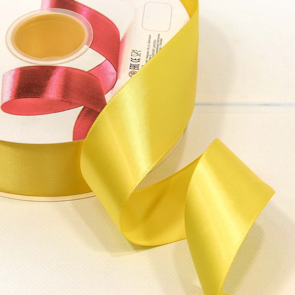Лента Атласная Полиэстер класс А 3,8см*100ярд шафраново-жёлтый (Код товара: 4627185238125)
