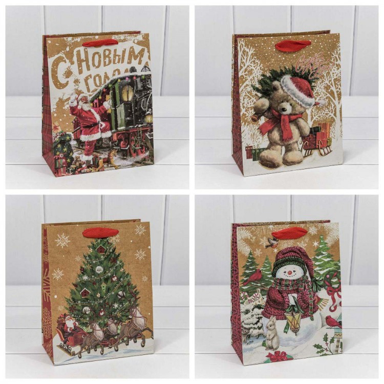 Пакет подарочный крафт "Новогодний" (микс) 18*23*10 см (Код товара: 4627166251426)