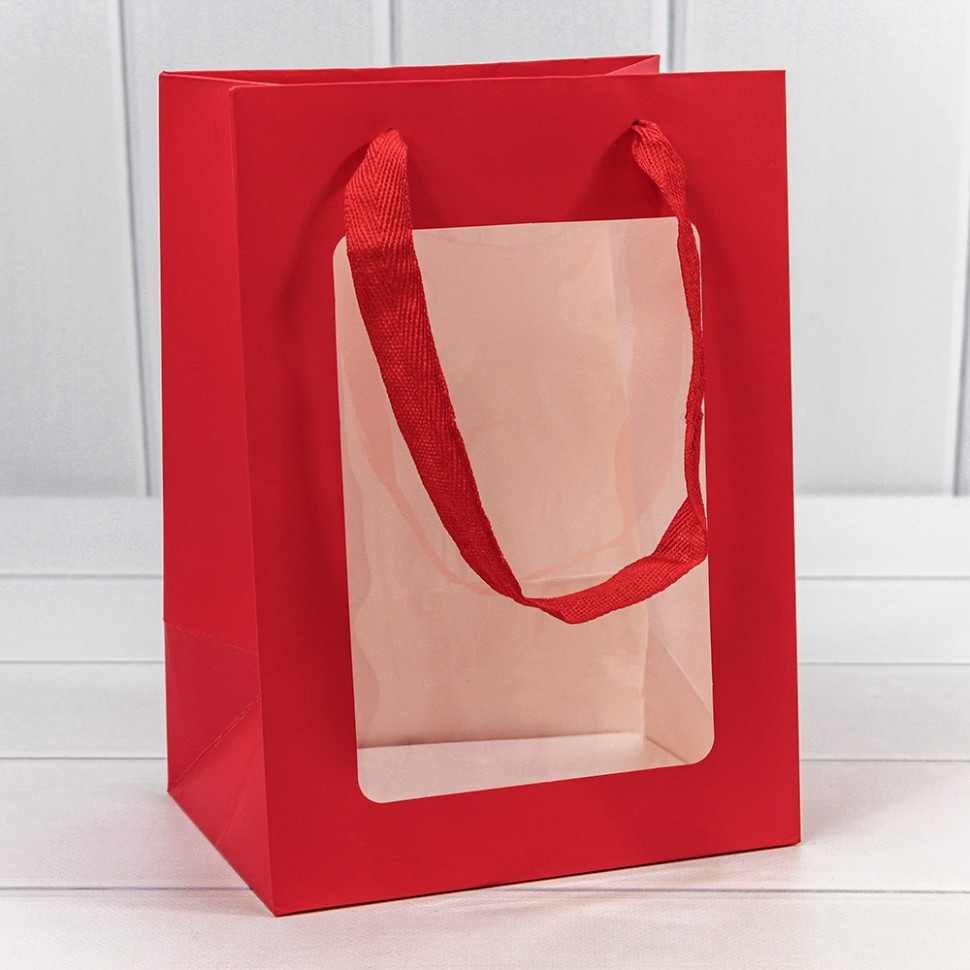 Пакет подарочный с окошком Красный 18*25*13 (Код товара: 4657814862827)