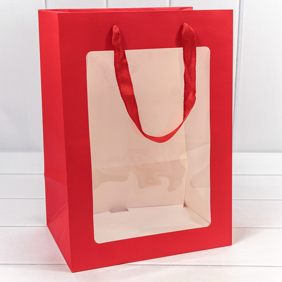Пакет подарочный с окошком Красный 25*35*18 (Код товара: 4657814862865)