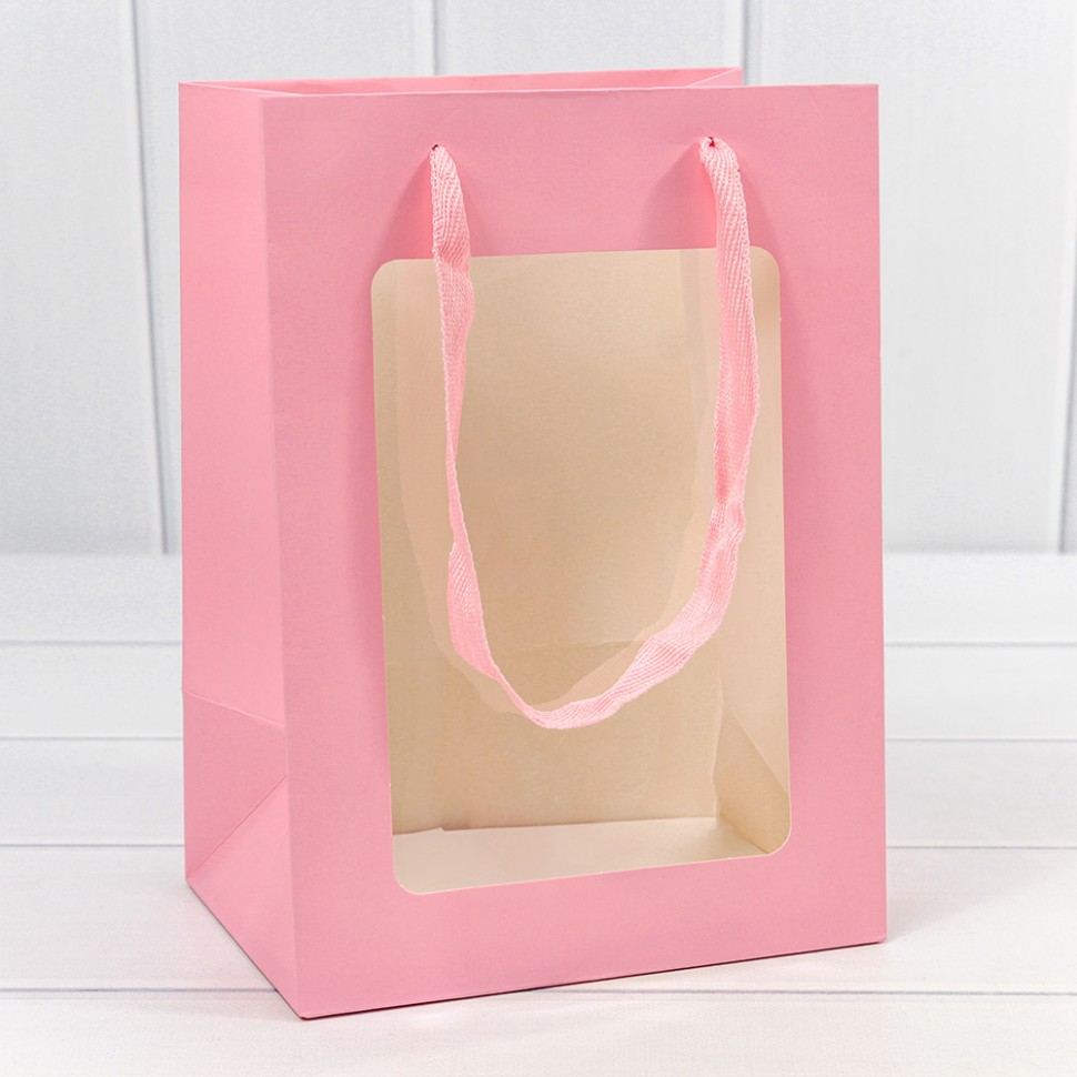 Пакет подарочный с окошком Розовый 18*25*13 (Код товара: 4657814862742)
