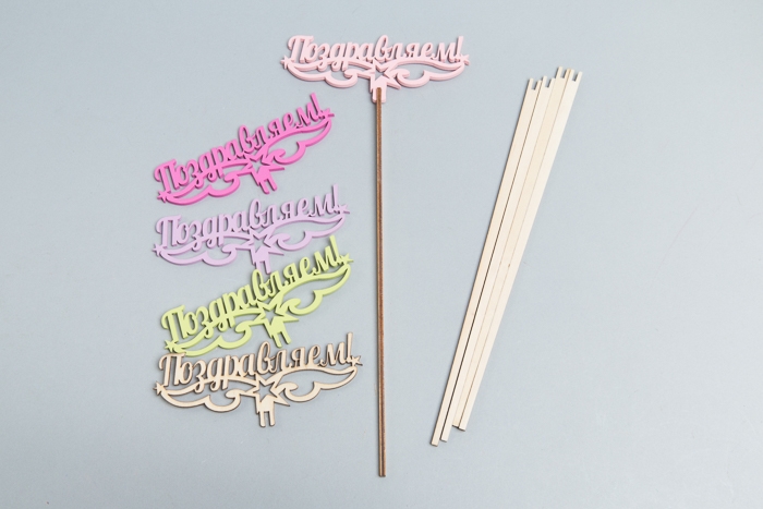 Вставка деревянная для цветов 5 шт "Поздравляем!" №03 микс (Код товара: 2200099696728)