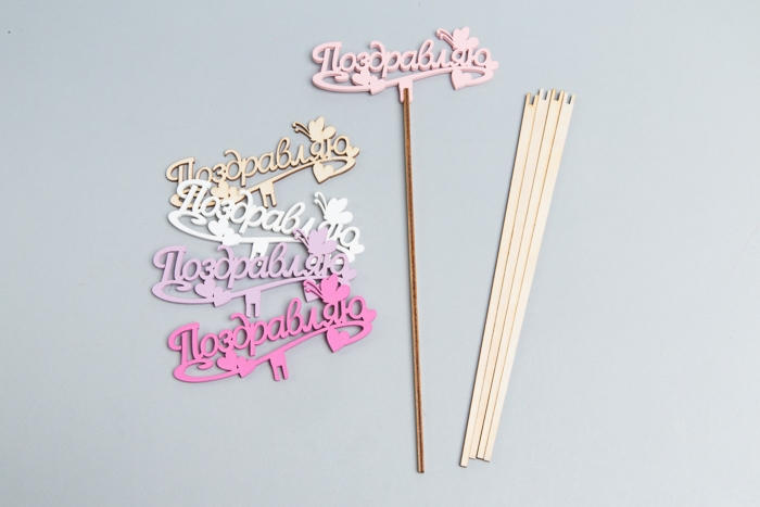 Вставка деревянная для цветов 5 шт "Поздравляю!" №04 микс (Код товара: 2200099696711)